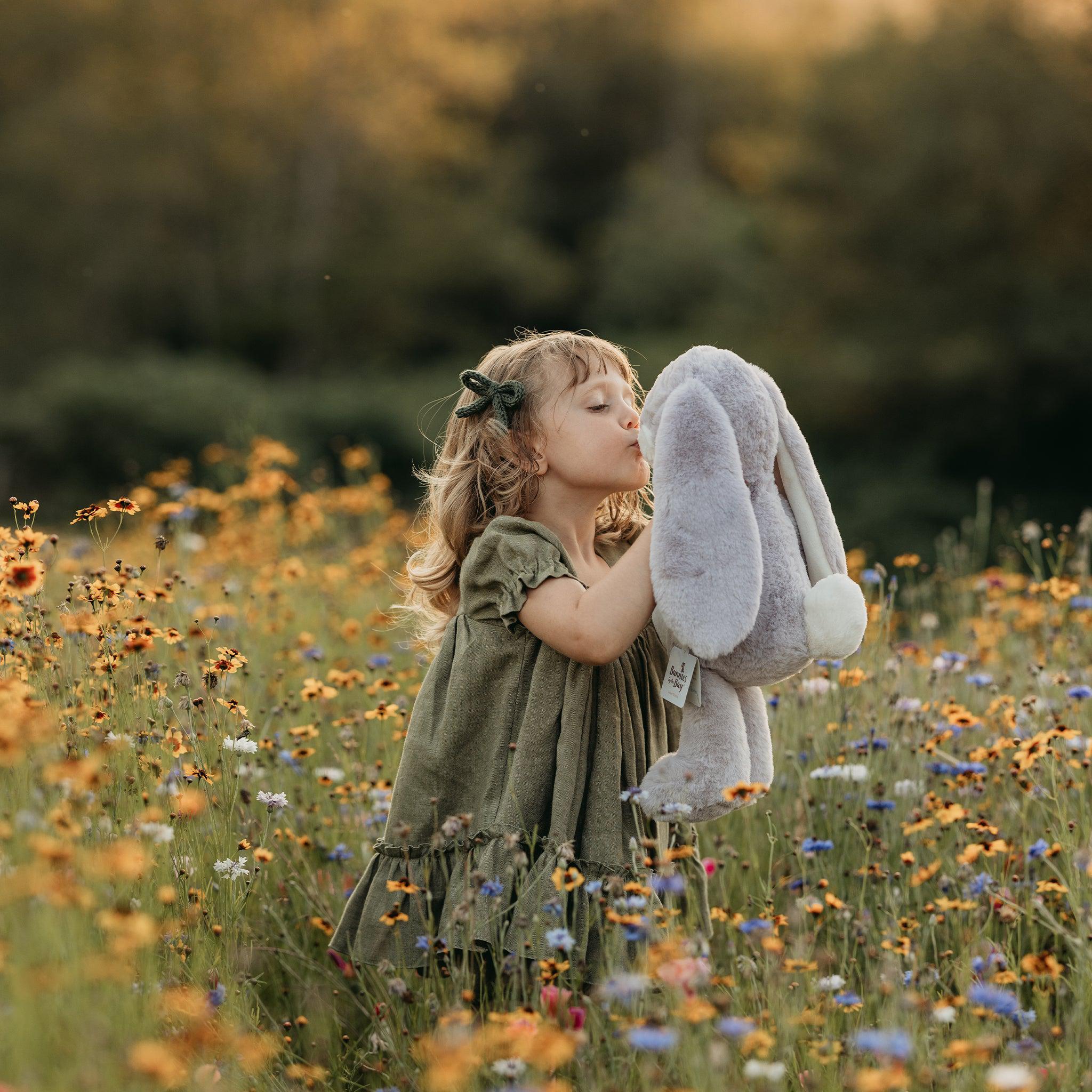 Sweet Nibble Bunny is sweet. tender and oh-my-gosh unbelievably soft. and now floppier than ever. and ready to be snuggled. This has a hand-embroidered face. pink cheeks. and big fluffy tail. Features lilac and warm white fur. with velour-lined ears perfect for personalizing. This plush bunny will become your best friend indeed.